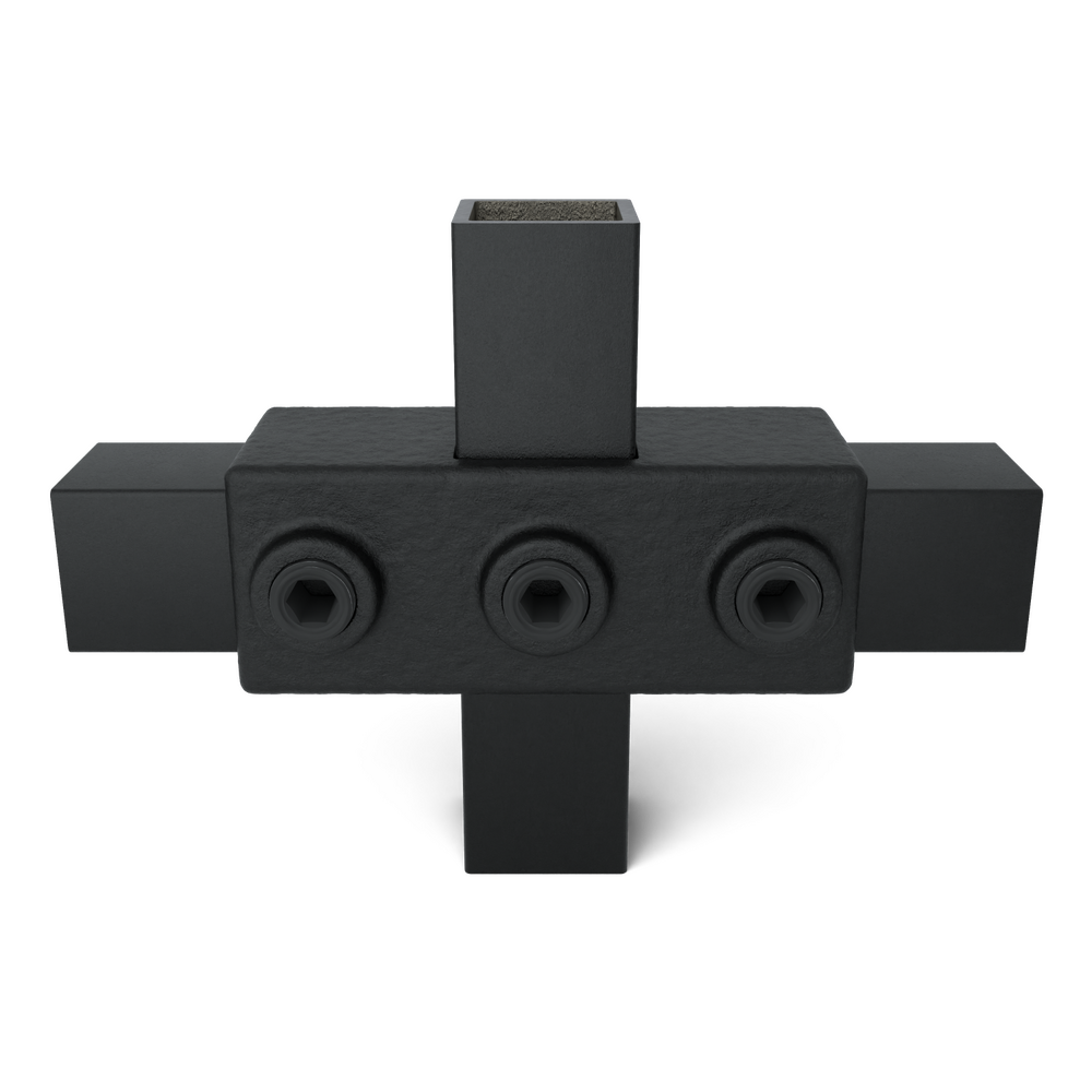 Side Outlet Tee - 25 mm. 3-direction clamp used to fix uprights with 3 horizontal...