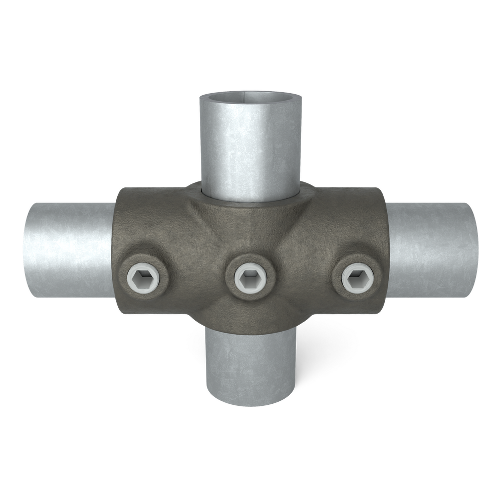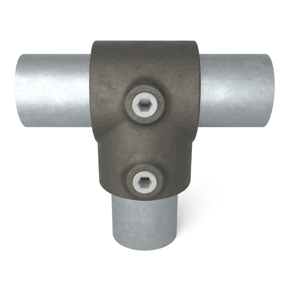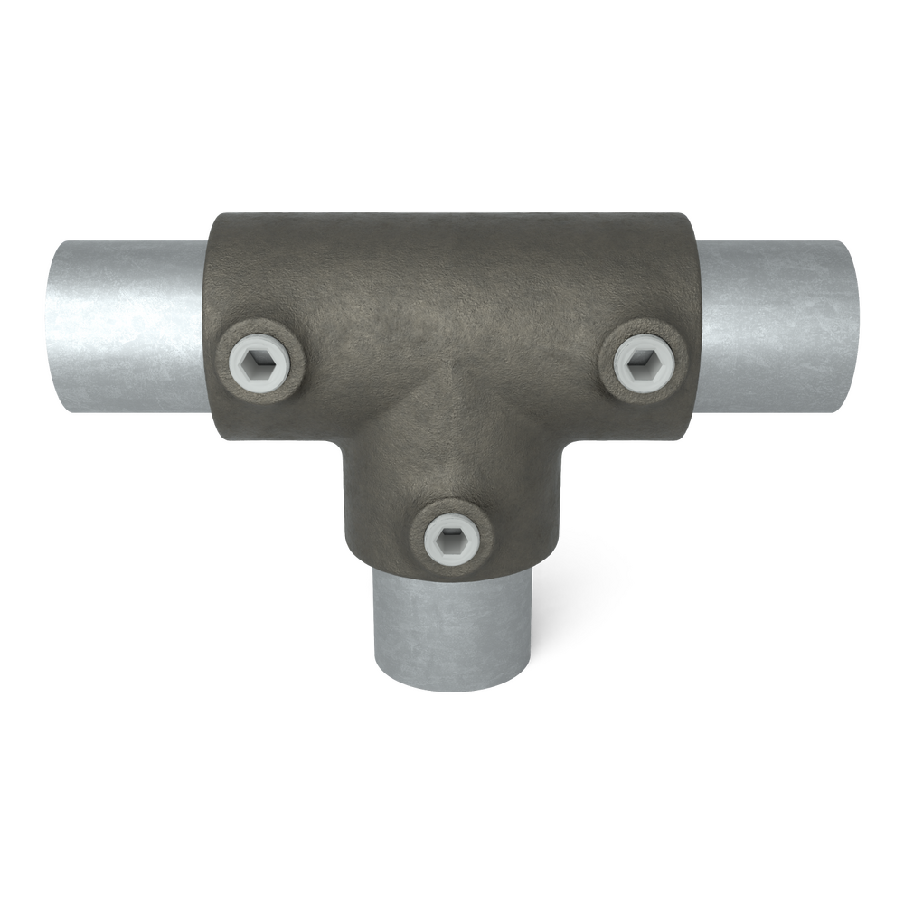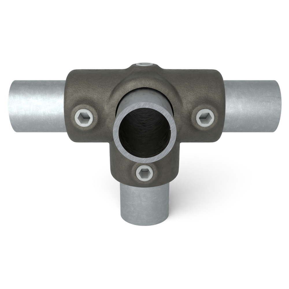 T-stuk met zij-uitgang. 3-weg buiskoppeling om verticale stijlen te koppelen...